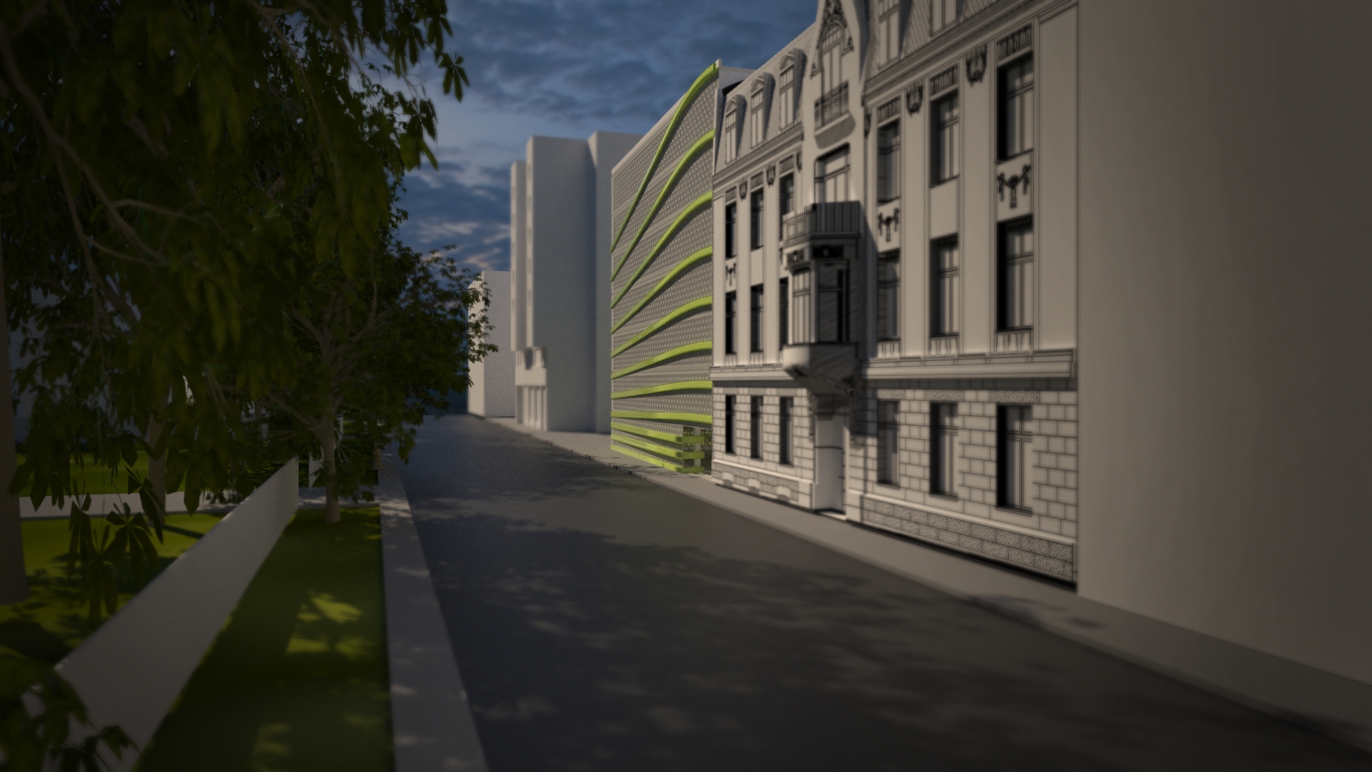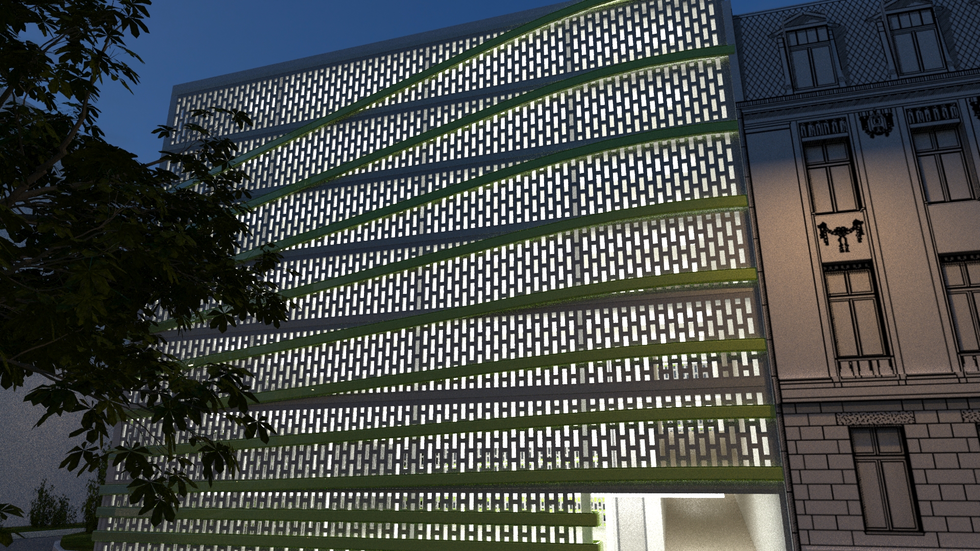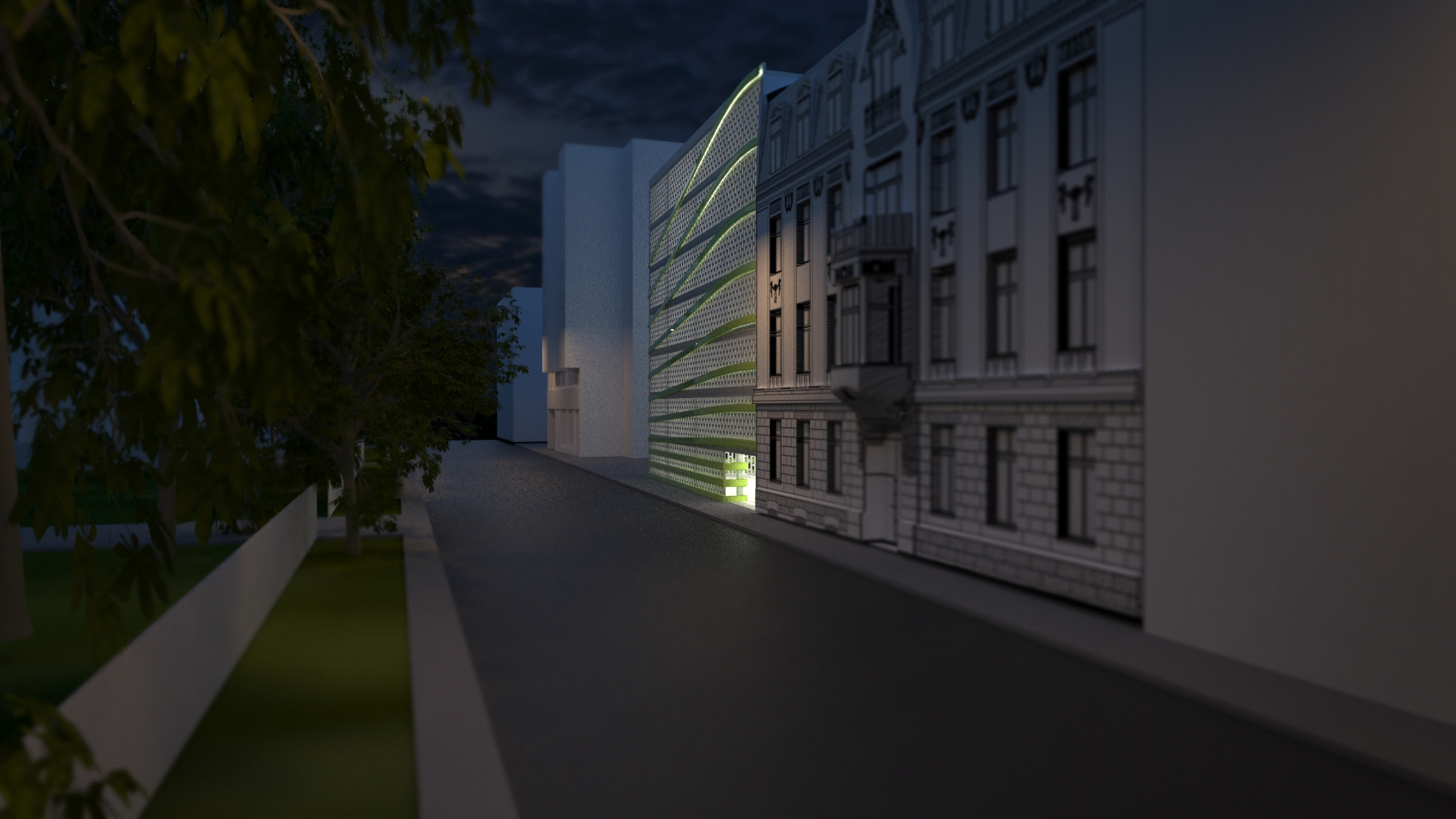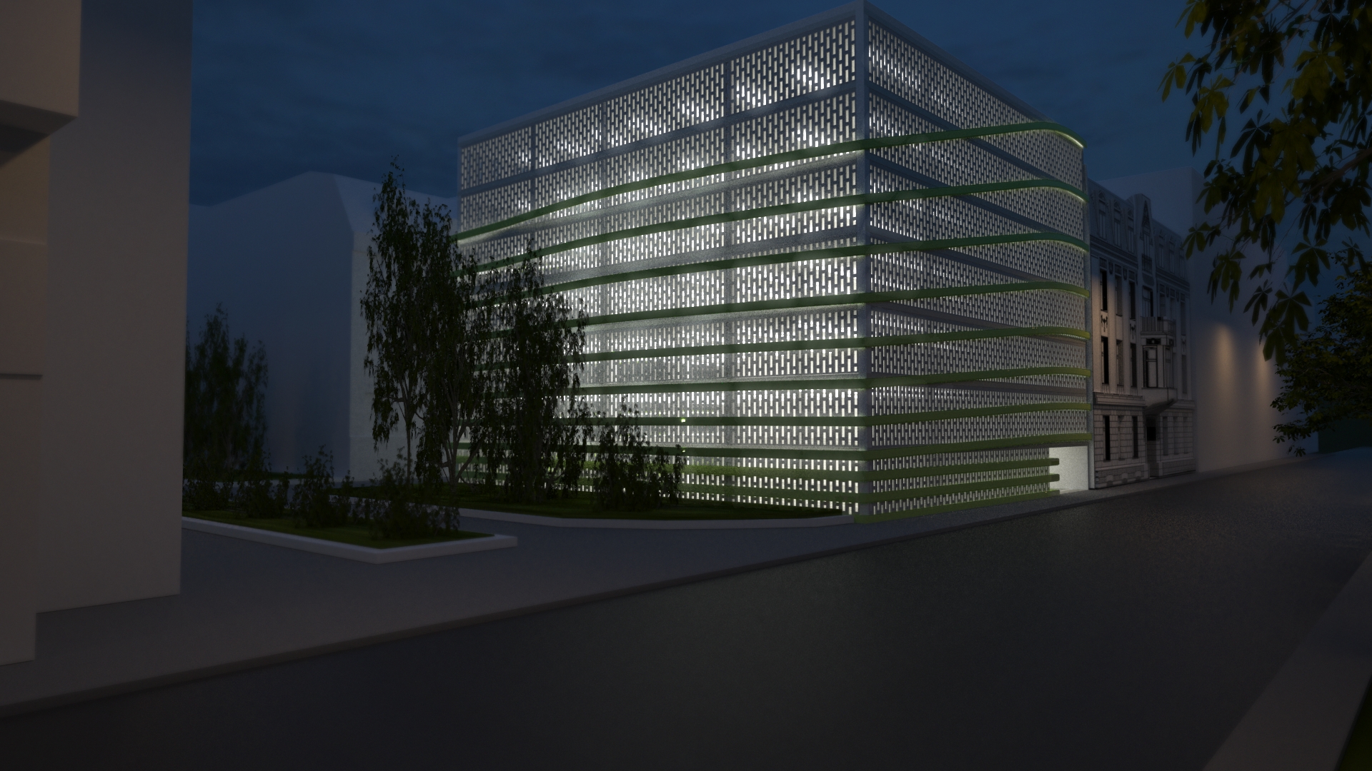 Koncepcja garażu samochodowego /multi-storey garage, Łódź, ul. Sienkiewicza